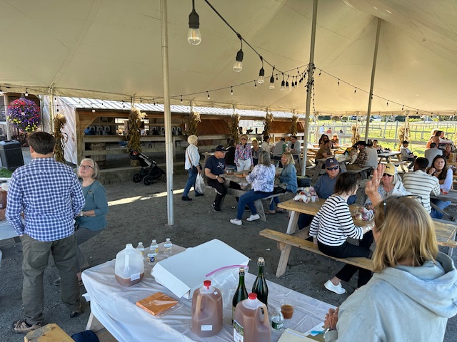 Philippe welcomes clients to our summer Wine and Cheese Client Event, with our event sponsor, Rick Meinhardt, V.P., Nationwide. Clients toured Mill River Winery and Vineyard in Rowley, MA, sampled some of their wines and a beautiful array of charcuterie and cheese.